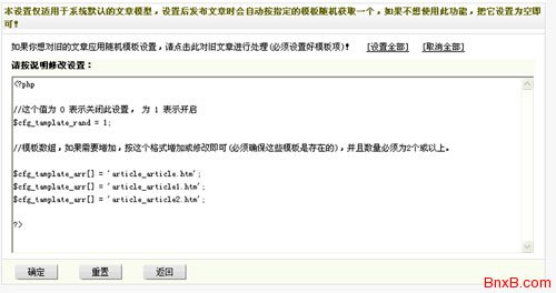 后臺-系統-系統設置-隨機模板設置,開啟方法$cfg_tamplate_rand=1;如果不想使用此功能,把$cfg_tamplate_rand=0即可,系統默認關閉狀態