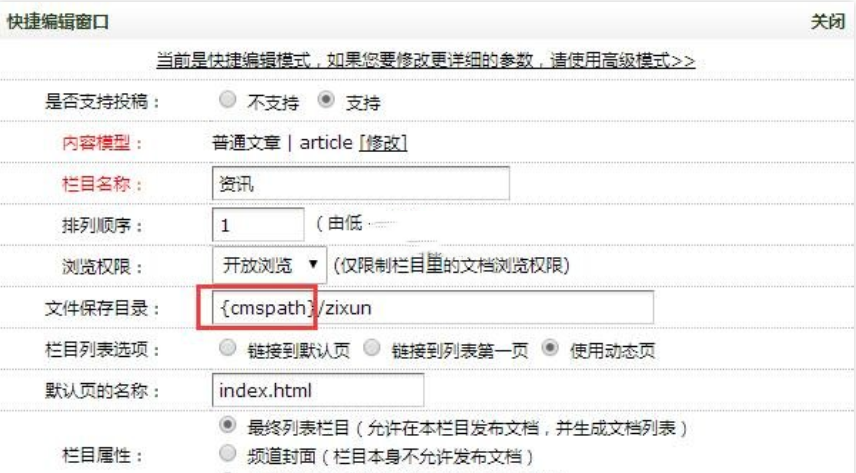 文件保存目錄下,前面必須要有CMS安裝目錄{cmspath},否則無法調用。