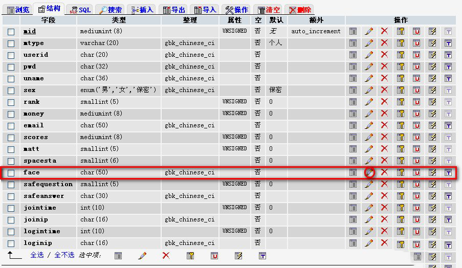 修改會員中心默認的會員中心member表face字段,有兩種方式: