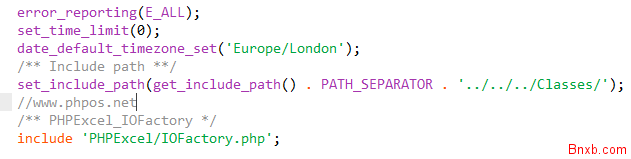 設置錯誤報告、設置時區(qū)、設置程序運行時間,當然,這個運行時間可以不設置、設置PHPExcel類的類庫存路徑,然后,引入IOFactory.php文件,這個文件是最重要的,本功能就是通過這個文件來處理的,這幾個設置代碼如下: